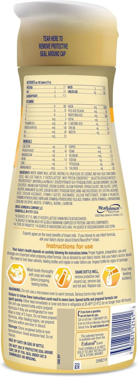 Enfamil NeuroPro Ready-to-Use Baby Formula, Ready to Feed, Brain and Immune Support with DHA, Iron and Prebiotics, Non-GMO, 32 Fl Oz Bottle, Pack of 6