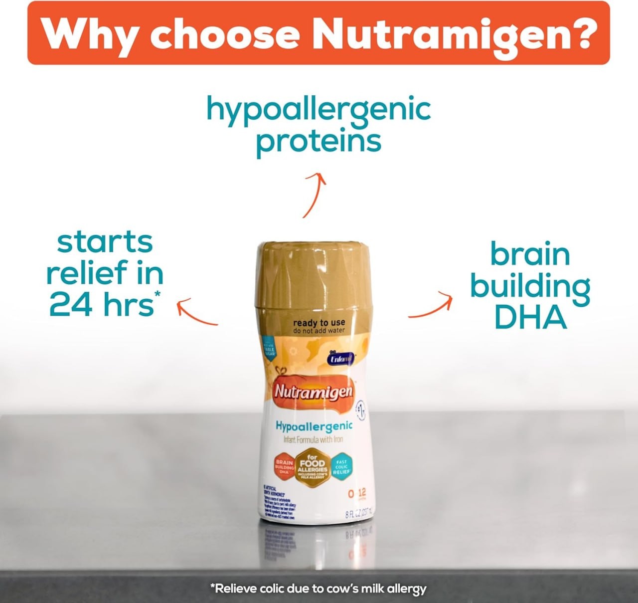 Enfamil Nutramigen Hypoallergenic Baby Formula with Iron, Lactose Free, Colic Relief from Cow's Milk Allergy Starts in 24 Hours, Brain Building DHA, Concentrated Liquid, 8 Fl Oz, 24 Bottles